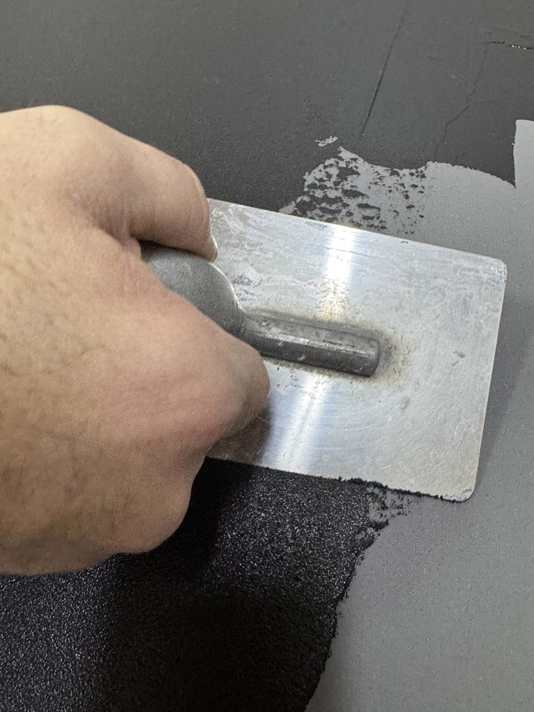 Apply in one coat after the primer has dried (about 4 hours) with a metal trowel.