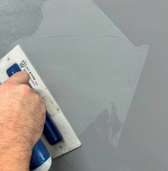 Основата трябва да бъде гладка, суха, обезмаслена и обезпрашена. Обработва се с грунд Balitura Fondo в бял цвят. Нанася се с бояджийски валяк.