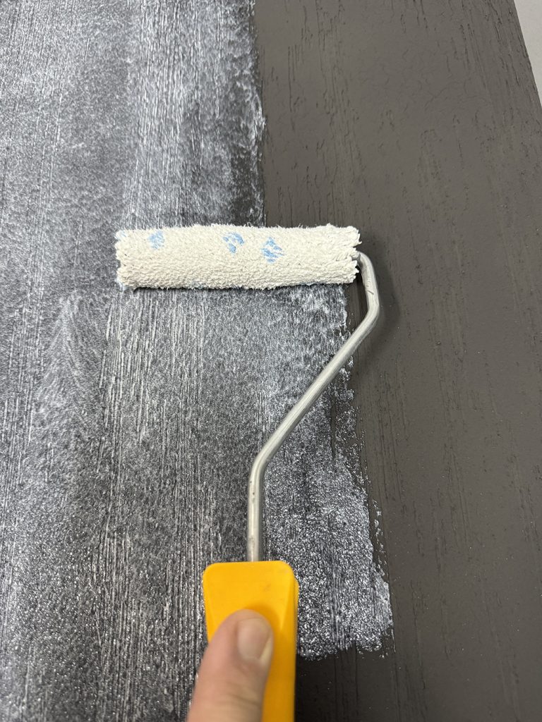 Нанася се първия слой от лепилото след изсъхване на мазилката (около 10 часа) с бояджийски валяк.