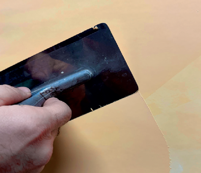Третият слой се нанася след изсъхване на втория /около 6 часа/ с къси движения и с натиск върху инструмента. Цикли се с максимален натиск, докато е още мокър, за да се постигне блясък на повърхността.